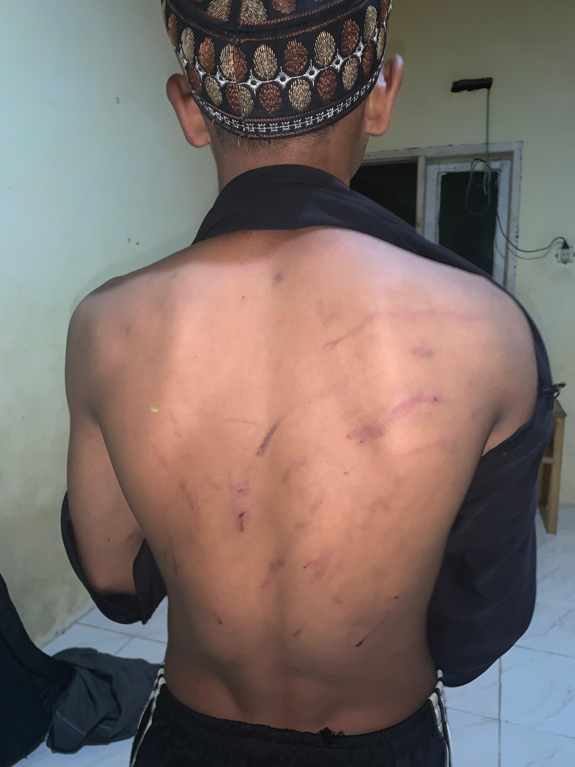 “Kemarin-kemarin saya masih tahan dengan perlakuan guru demi untuk menimba ilmu tapi terakhir ini pada hari Minggu 29 Oktober 2023 saya suda tak sanggup lagi soalnya guru suda memukul dengan tidak pake perasaan lagi sehingga belakan saya luka dan sangat sakit dan pedis,” tutur AD.