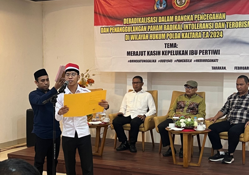 Bulungan (BERANDATIMUR) – Polda Kaltara bersama Satgaswil Kaltara Densus 88 AT Polri melaksanakan deradikalisasi dalam upaya pencegahan dan penanggulangan paham intoleran, radikalisme dan terorisme di wilayah hukum Polda Kalimantan Utara, Rabu 6 Maret 2024.