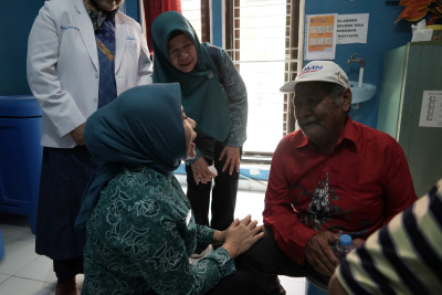 Ada 3 layanan yang diberikan pada kesempatan ini, yaitu penyakit dalam, mata dan kandungan (untuk umum). Di setiap ruang pemeriksaan, dengan akrab ia menanyakan kondisi para lansia pun warga umum. Tak jarang gurauan terlontar dari wanita yang akrab disapa Bunda Rahmawati ini. (dkisp)