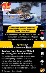 Kebakaran di dalam kapal ini menghanguskan dek atas dengan menewaskan lima penumpang dianggap bukan sekadar musibah laut. Sebagaimana caption ungahan akun Lambe Turah Kawanua LTK Group sehari yang lalu. Unggahan ini telah mendapatkan 117 tanggapan dari netizen.