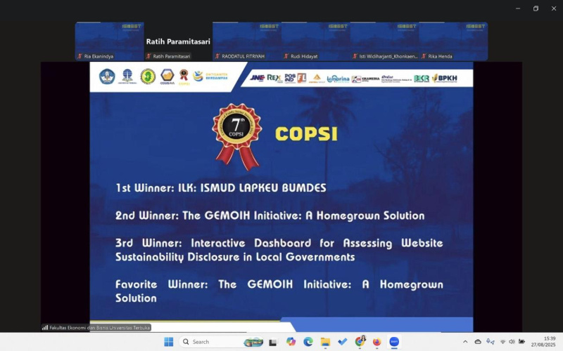 Pada sesi final kompetisi ini yang berlangsung pada Rabu, 27 Agustus 2025, GEMOIH bersama lima inovasi lainnya bersaing ketat memperebutkan posisi juara dan akhirnya tim juri menetapkan inovasi ILK (ISMUD LAPKEU BUMDES) milik Prof. Iskandar Muda Damanik, CPA dinobatkan sebagai juara I, GEMOIH milik TP PKK Bulukumba sebagai juara II dan juara III diraih inovasi Interactive Dashboard for Assessing Website Sustainability milik Prof. Dr. Heru Fahlevi, SE, M.Sc.