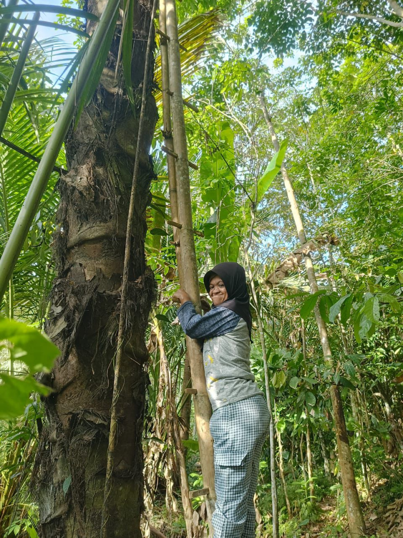 Sartia, anggota KDD Maju Jaya Bontomangiring bersiap untuk menyadap nira di pinggiran sungai Dusun Bontomanai. Penyandang disabilitas ini pernah mewakili Kabupaten Bulukumba pada Konferensi Internasional yang bertema “Exploring the Practice of Restoratif Justice Framework to Build Resilience and Address Climate Change Harms in Indonesia” di Universitas Brawijaya Malang, Jawa Timur pada 2024. (*)