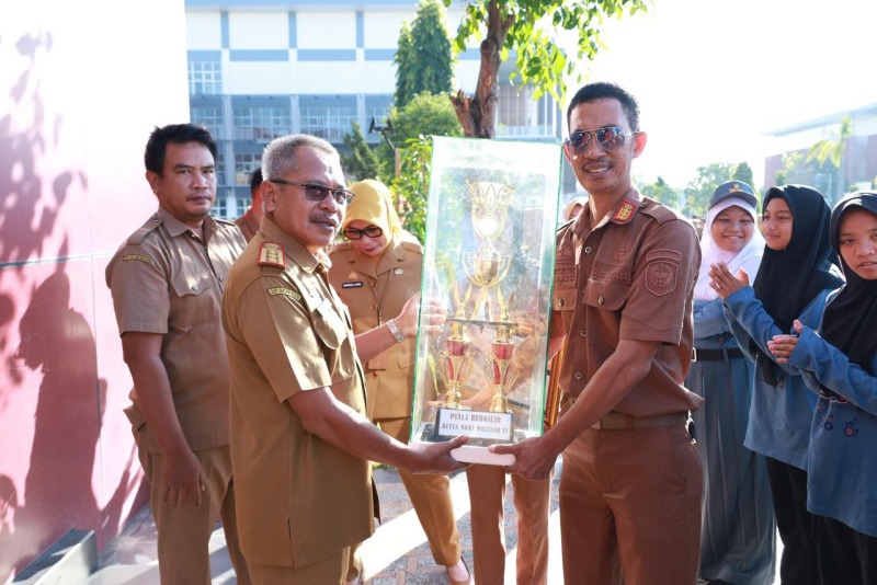 Penghargaan atas capaian ini kembali diserahkan langsung oleh Sekretaris Daerah Kabupaten Bulukumba, Muh Ali Saleng, di sela pelaksanaan apel gabungan OPD lingkup Pemerintah Kabupaten Bulukumba di Halaman Kantor Bupati Bulukumba, Senin, 20 April 2026.